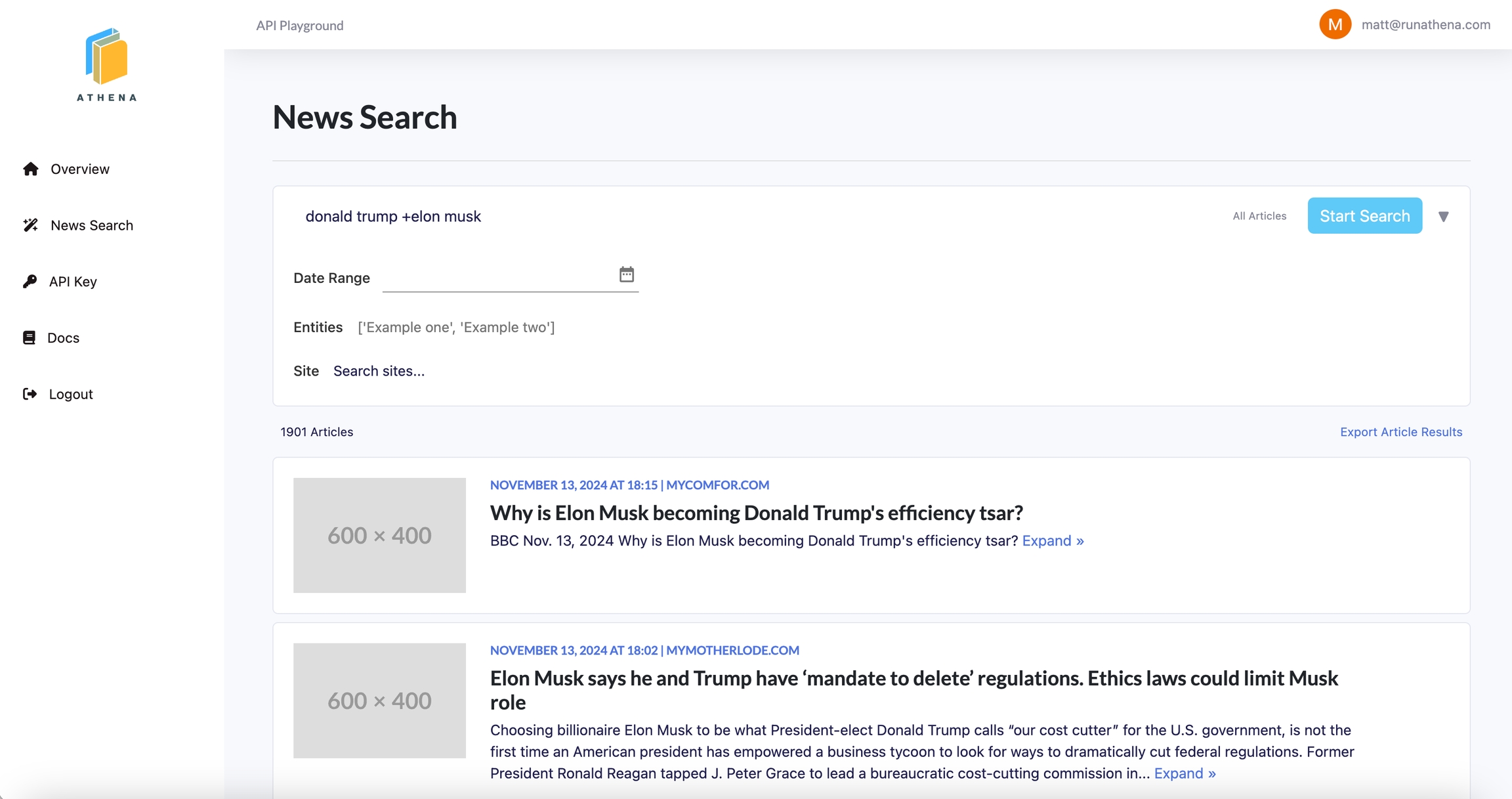 This page enables you to search for new articles using a variety of criteria. Results are exportable to CSV. Note: if you choose to export all results, you will use up 1 request per number of pages of results.